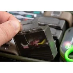 Estas ingeniosas cajitas para accesorios son perfectas para guardar pequeños aparejos. Cuentan con un divisor extraíble para dividir la cavidad en dos espacios iguales y encajan perfectamente en la caja de aparejos Korda, mientras que una pestaña de identificación con bisagras se puede quitar fácilmente de la caja de aparejos. Cada paquete contiene 3 cajas de accesorios.