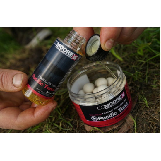 Simplemente dale a tus Pacific Tuna Pop Ups/Hookbaits una capa ligera del potente Hookbait Booster a juego, déjalo secar y repite si es necesario. El revestimiento líquido repetido de las ventanas emergentes puede reducir su flotabilidad.