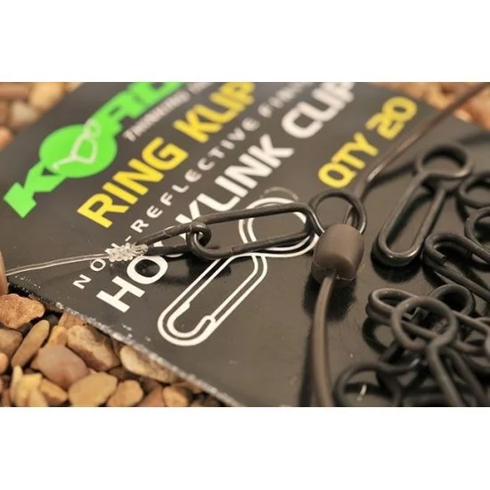 El clip de anillo Korda se ha desarrollado especialmente para la fijación sencilla y fácil de aparejos, pero también es adecuado para plomo y otras aplicaciones. La forma única de este clip proporciona más libertad de movimiento para la longitud del anzuelo. Presionando el clip con dos dedos, el clip se abre y es posible una fácil conexión con, por ejemplo, el aparejo.