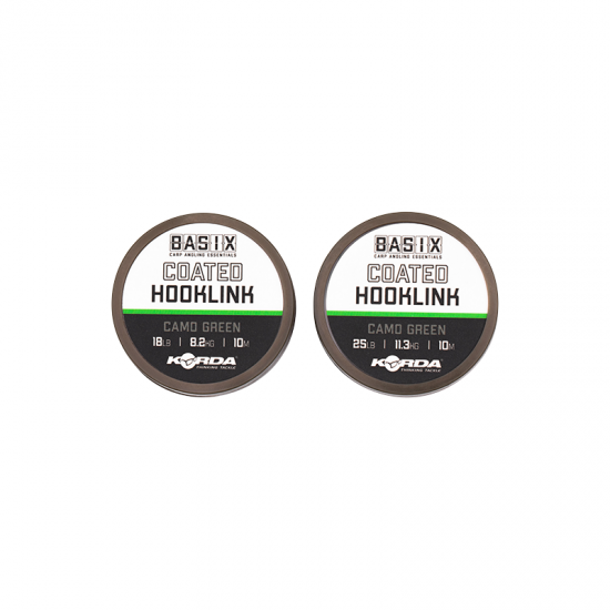 El anzuelo recubierto BASIX es un material trenzado recubierto suave y flexible que se puede usar para muchas presentaciones diferentes de cebos de fondo, pescantes y pop-ups. Tanto el revestimiento exterior como el núcleo del material tienen un sutil color «verde camuflaje» que asegura que el material en la parte inferior se desprenda bien. El material será agradable y recto sin tener que vaporizarlo y tiene buenas propiedades anti-enredos. El recubrimiento también es fácil de quitar para crear un punto de pivote suave para más movimiento en el eslabón del gancho. El material se puede atar fácilmente sin dañar el revestimiento exterior y, en combinación con los conocidos nudos de pesca, puede hacer un líder resistente.