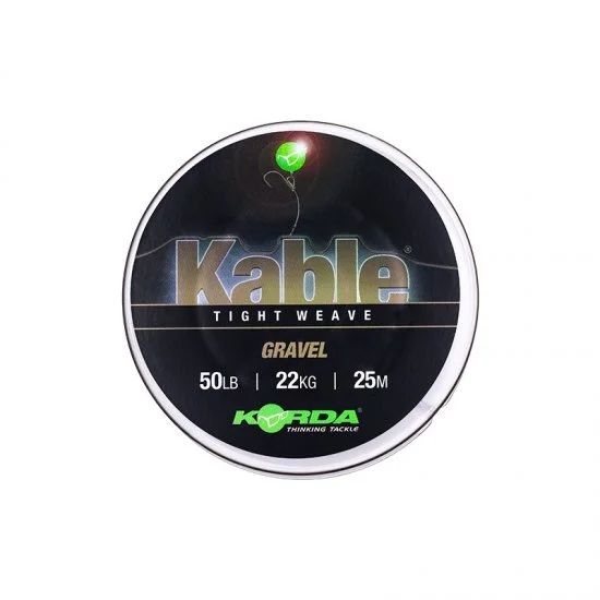 Korda Kable Tight Weave está diseñado para ser el núcleo de plomo más fuerte disponible. Con características de camuflaje y con una resistencia a la rotura de más de 50 lb (22 kg), no lo defraudará en situaciones exigentes. Debido a su núcleo exterior tejido (onda estrecha) muchas veces más apretado, el líder de tejido apretado Korda Kable se hunde hasta el fondo muchas veces más rápido y no se forman burbujas de aire en el líder mismo. El cable es extremadamente flácido y flexible, lo que le permite colgar sutilmente sobre el terreno submarino. Esto mantiene su línea oculta en las inmediaciones de su plataforma, mientras que es increíblemente resistente a la abrasión y agrega durabilidad al material final. Kable es adecuado para hacer cualquier tipo de líder de plomo y es totalmente compatible con todos los componentes de la plataforma Korda.