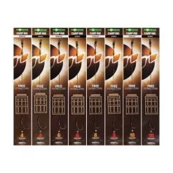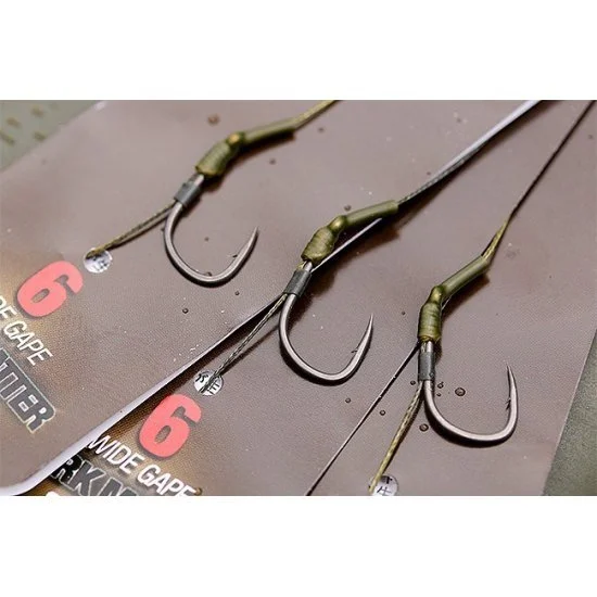 El anzuelo Wide Gape utilizado es muy popular debido a su fiabilidad y capacidad de enganche. Extender el gancho con un pequeño trozo de Shrink Tube también lo hace mucho más agresivo a la hora de atornillarlo. El cabello se sujeta con una pieza de silicona para asegurar que deja el gancho en el lugar óptimo. La trenza de materia oscura flexible y extremadamente pesada fue elegida como material líder. Debido a la combinación de hundimiento rápido y flexibilidad, el eslabón de gancho seguirá bien los contornos del fondo y permanecerá plano. Si tiene miedo de enredar el aparejo, es recomendable utilizar un larguero de PVA o una red de embudo.