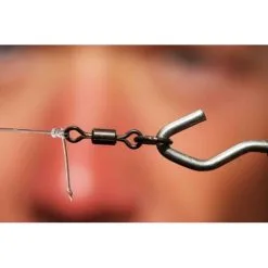 Para completar nuestra gama, en realidad necesitábamos un tipo más pequeño de pieza giratoria, bueno, aquí está. El pivote Flexi-Ring de tamaño 11. Esta es la pieza giratoria para la plataforma rígida con bisagras. La plataforma fue diseñada por Terry Hearn y se considera la plataforma Big Fish. Este aparejo excepcional se pesca con un pop up sobre una pequeña cantidad de alimento. Para hacer este aparejo puedes usar el Wide Gap de Korda y un anillo de aparejo pequeño. Después de anudar, apriete toda la longitud del anzuelo. Lo mejor es hacer esto en combinación con vapor. Esto asegura que la longitud del anzuelo sea aún más recta y que el anzuelo quede derecho en lugar de hacia adentro. El Flexi-Ring Swivel de tamaño 11 también es bueno para usar con el nuevo Rig de 360 grados. Este aparejo también se pesca en combinación con un pop up y es casi imposible que la carpa lo escupa. Dave Lane ha utilizado este equipo con gran éxito. En definitiva, un pivote muy fiable que no le fallará, incluso en condiciones extremas.