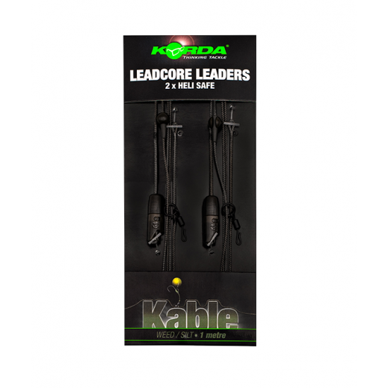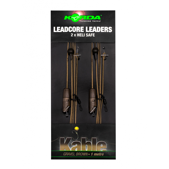 Disponibles en una selección de Gravel Brown o Weed/Silt, con dos por paquete, los Leadcore Leaders de Kable Heli-Safe también vienen con: 2 x No-Trace Beads de repuesto; 2 collares Mini Heli-Safe; 2 x Muelles rojos Mini Heli-Safe.