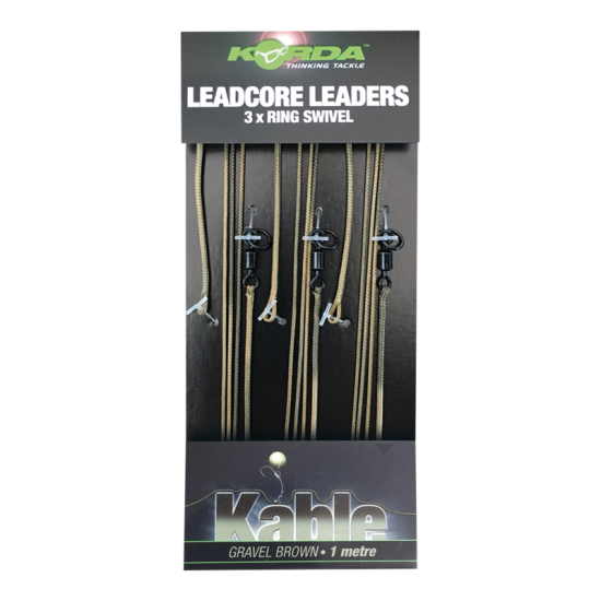 De nieuwe gebruiksklare Leadcore leaders van Korda zijn vanaf nu verkrijgbaar in de hengelsport speciaalzaak! Deze nieuw leaders zijn te gebruiken voor inline loden (Ring Swivel versie), maar ook met wartel loden (Leadclip versie). Beide varianten zijn verkrijgbaar in twee verschillende kleuren te weten: gravel/brown en weed/ silt. Deze gebruiksklare leaders zijn gemaakt van 1 meter Kable Leadcore, waarvan de verbindingen nog eens extra zijn versterkt met lijm. Door de unieke kleuren combinatie van het Kable Leadcore zal de leader perfect gecamoufleerd liggen op de bodem van het viswater.