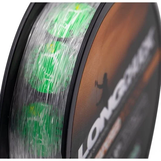 Los otros 2 m son cónicos y brindan una conexión ordenada con la línea principal más delgada. Opcionalmente, viene en 0,27 mm (10 lb), 0,30 mm (12 lb) y 0,33 mm (15 lb) de diámetro. Los líderes cónicos tienen las mismas propiedades que la línea Long Chuck.