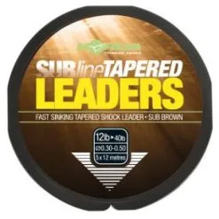 Si prefieres un líder de casting más tradicional, aquí tenemos la solución. Los SUBline Leaders son suaves, flexibles y cónicos. La pieza que ata a su línea principal es delgada y llega a un extremo grueso que se une al aparejo final. De esta manera tienes un nudo pequeño y un extremo extremadamente firme que es apto para los lanzamientos más lejanos. Los líderes SUBline están disponibles en esas variantes: 8 lb – 40 lb, 10 lb – 40 lb y 12 lb – 40 lb. Cada carrete contiene cinco guías de 12 metros que se pueden cortar a medida si es necesario. Los SUBline Leaders cónicos solo están disponibles en color Sub Brown.