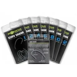 La forma especial de este anzuelo hace que sea muy difícil que una carpa una vez pinchada lo escupa y lo pierda. La forma curva está construida de tal manera que el anzuelo permanece perfectamente en el labio inferior, esta forma y el ojal ligeramente curvado hacia adentro también le dan al anzuelo el llamado efecto «alineador de línea». Esto hace que este anzuelo sea fácil de pescar sin tubo retráctil. El Kurv Shank se puede usar para muchos tipos diferentes de equipos, como el retroceso y el equipo KD. La punta de este anzuelo es muy afilada, fuerte y muy fiable, esto en combinación con su forma especial, hace de este anzuelo el anzuelo favorito de muchos de los mejores pescadores europeos. Este es también el anzuelo que se adapta perfectamente al Multi rig. Puedes usar este modelo muy bien en lugar de un anzuelo Choddy. Debido al modelo del Kurv Shank en combinación con la punta del anzuelo recto, el aparejo múltiple ahora pesca aún más afilado. ¡Un diseño revolucionario!